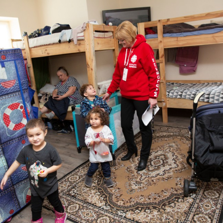 "Вранці приходимо, а люди просто в костелі на лавках сидять. Одні виїжджають, інші прибувають, всіх треба розселити, нагодувати, забезпечити найнеобхіднішим. Рух був неймовірний. Потім вже стало трохи легше, бо люди почали надовше лишатися. А сьогодні вже й наші постійні мешканці допомагають: прибирають територію, чистять сніг", — ділиться жінка.
