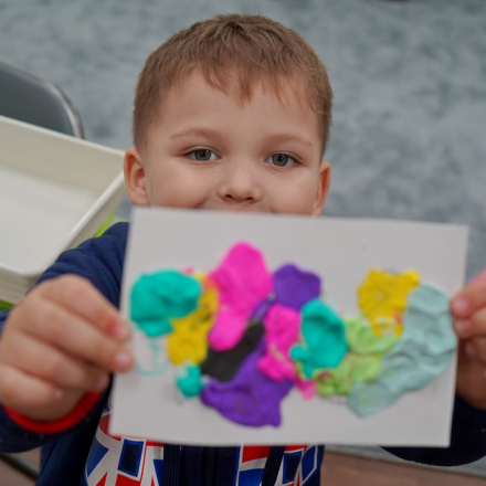 «Цікавий хлопчик росте, – каже з гордістю. – Іграшки любить різні, дуже енергійний. Малює, ліпить охоче, вишиває. Гарний хлопчик, розумний. Хотів на танці, на гімнастику його віддати – а там лише з 5 років можна. Треба трішки підрости. Півтори години занять тут, у Центрі, дуже нам допомагають. Виховательки, пані психолог, логопед – усі дуже чуйні. Онук жіночу турботу тут отримує – те, чого йому зараз так бракує… І головне, що діти – у безпечному місці, є укриття. Садочки в Харкові дорогі, від 12 до 15 тис за місяць, не всім це під силу. Я не можу піти працювати, бо постійно з дитиною. Пенсію маю, військові виплати, соціальну допомогу невелику від держави на дитину, але коштів однак бракує. Фрукти, ласощі купую – все, що він хоче… Дитина не винна, що батьків немає поруч. Аліменти не платять, не допомагають, намагався контакт підтримувати, але… Раз у рік подзвонили, з днем народження Женю привітати. І все. Раніше хоч фото сина просили вислати, зараз нічого не просять. І працювати не хочуть. Важко мені самому, звісно. Мав кімнату маленьку в гуртожитку. Потім мені, як ветерану, що втратив власне житло, дали помешкання від держави. Я доклав до того власні кошти і купив квартиру. Мешкаємо тепер там».